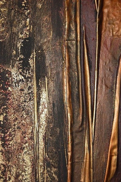 Holzstehlen - starke Baubohlen bearbeitet mit verschiedenen Materialien, Acryl, Öl und zum Teil mit Blattgold veredelt. Verschiedene Formate.