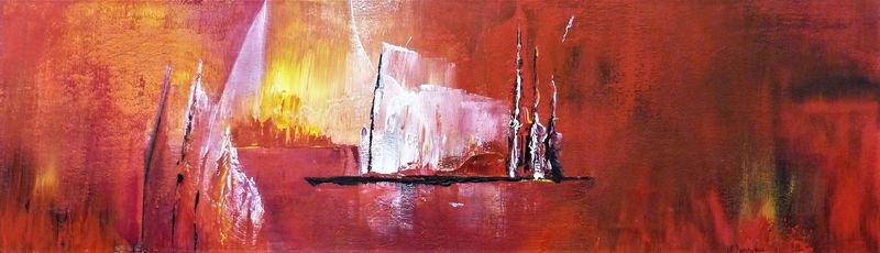 Kleinmotive (ca. 20cm x 20cm) Seide auf Holz / Acryl - in Serie zu hängen – ob als Quadrat oder als auch in Reihe arrangiert - immer ein verblüffender Hingucker.